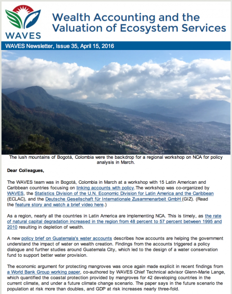 WAVES Newsletter Issue 3515 Latin American/Caribbean countries share path to NCA, Guatemalan water accounts trigger policy dialogue, mangrove loss puts GDP and lives at risk