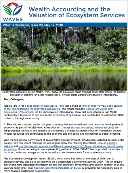 WAVES Newsletter Issue 36How NCA can help deliver the SDGs, ecosystem accounts in Peru, Rwanda to begin mineral accounts