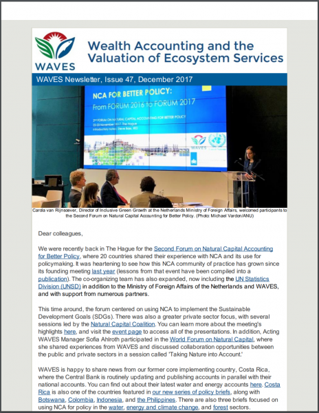 WAVES Newsletter Issue 41Policy Forum in The Hague, South-South Knowledge Exchange in Indonesia, and Concepts for Ecosystem Accounting